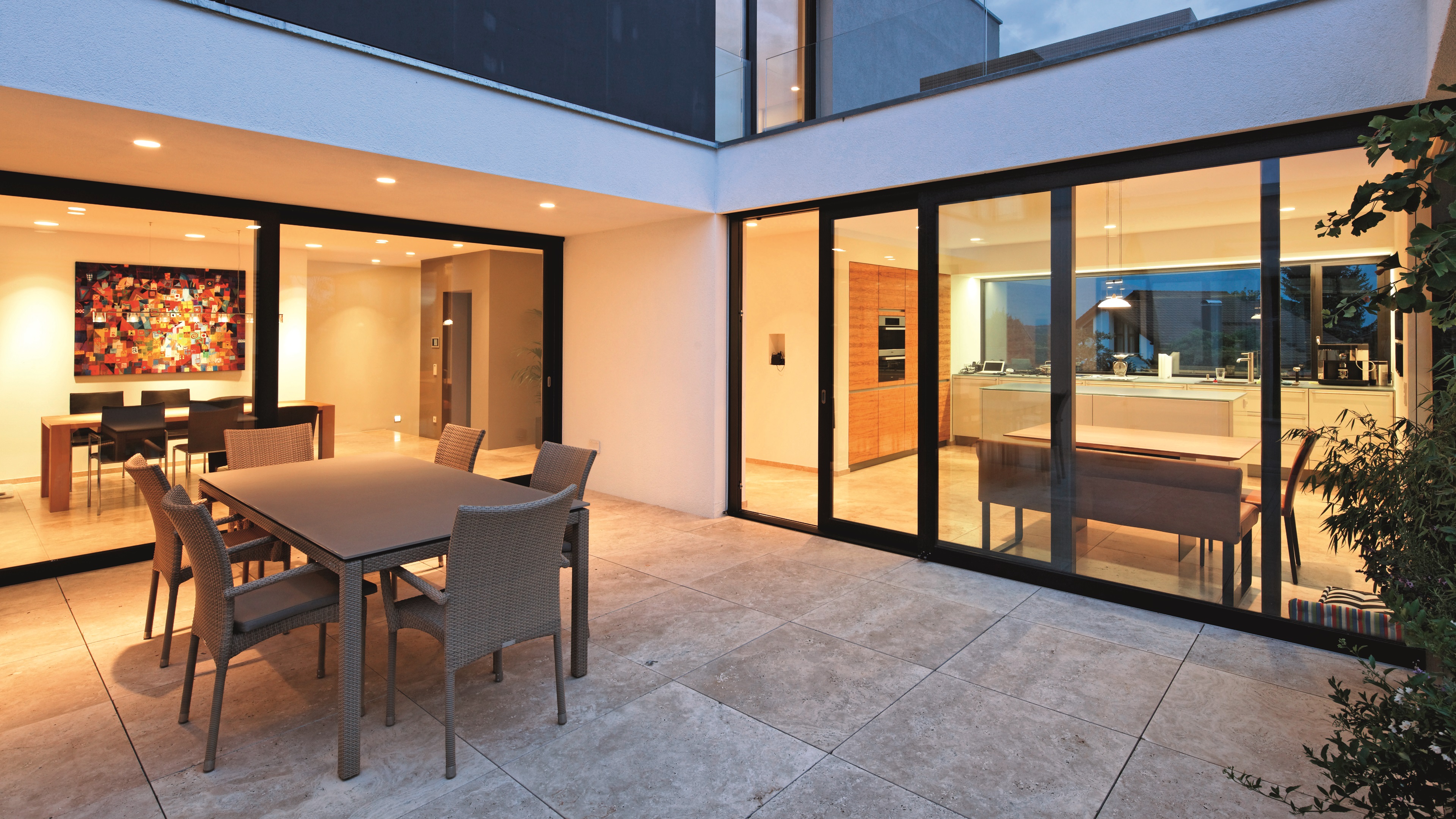 Textiler Sonnenschutz liegt im Trend, und das zu Recht. Vor allem im Bereich von Terrassen und Wintergärten, aber auch am klassischen Fenster bringt ein ZIP durch seinen Tuchbehang und seine Transparenz sommerliches Flair an die Fassade. Große Flächen sind dabei ebenso möglich wie Lösungen um die Ecke. Dabei bieten die seitlichen easyZIP-Führungsschienen hohe Windstabilität und der reagible Motor besonderen Komfort. Mit drei Varianten im Programm – integriert im Aufsatzkasten ROKA-TOP® 2 RG oder im VBR-Vorbaukasten sowie als FLEX ZIP-Lösung für raumseitig geschlossene Systeme – ergibt sich ein breites Spektrum an Möglichkeiten.